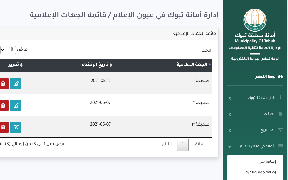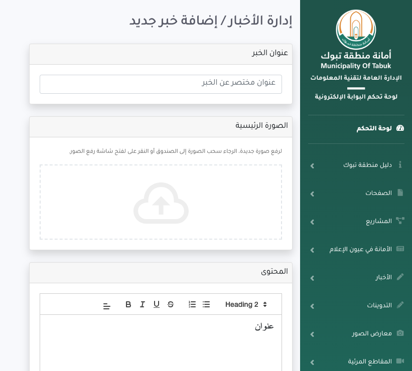 Design and development of the control panel interface for managing the Tabuk Municipality portal.
